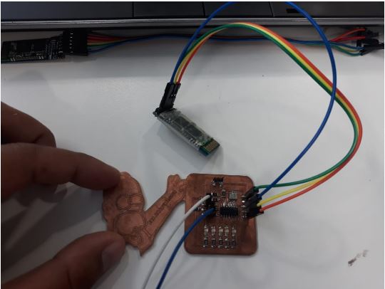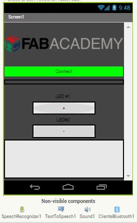 For this assignment I have decided to use the electronic circuit designed in week OUTPUT DEVICES week, To the circuit we have adapted a bluetooth module HC-05 to be configured as a slave, to be able to connect through a mobile application designed in app inventor from which we will send the message