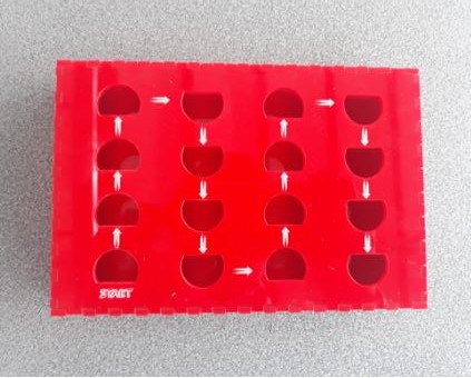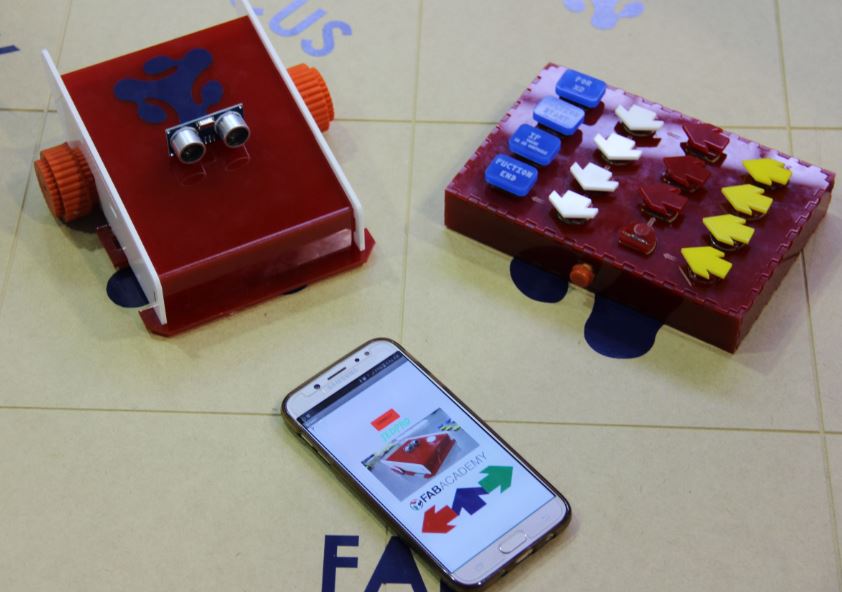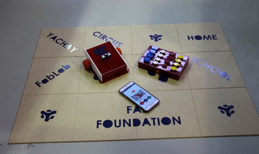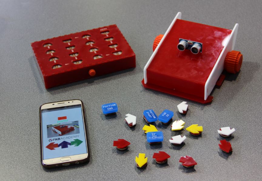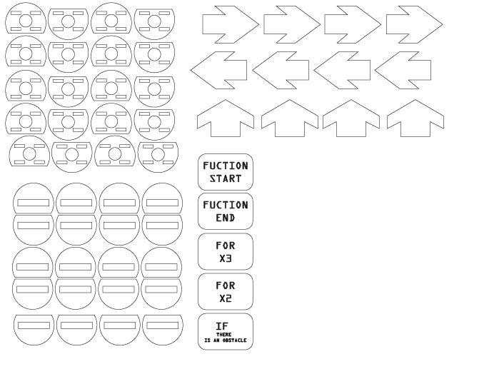 The instruction parts are inserted into the programming interface, which consists of 16 inputs and a control circuit based on the Atmega 328 microcontroller. This control circuit is responsible for reading the resistive value of each inserted instruction and relates the value read with the value of the previously assigned instructions. After identifying, the instructions are stored temporarily in a vector housed in the flash memory while you finish reading all the instructions. Once the instruction reading is complete, it proceeds to send the instructions one by one through the serial port connected to a wireless module to the robot represented by a cart that proceeds to execute the instructions one after the other until the sequence is completed. . All this process is done in milliseconds once the child press the start button also located on the board.