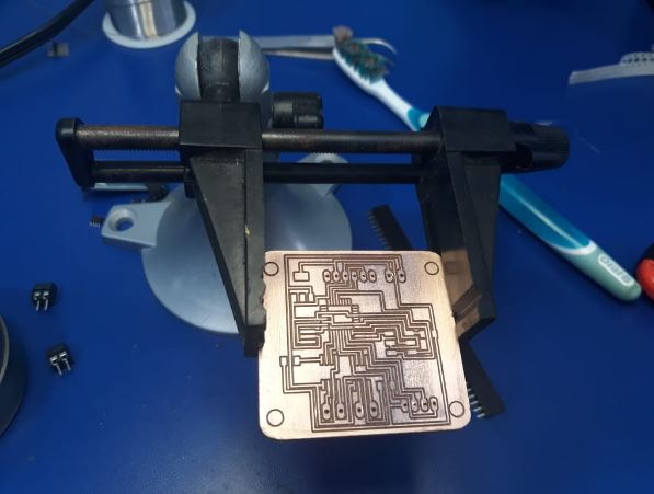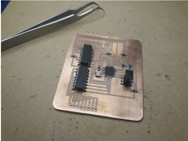 For the manufacture of the pcb board use the Roland MDX 540 CNC milling machine, the process can be seen in the assignment of week 4