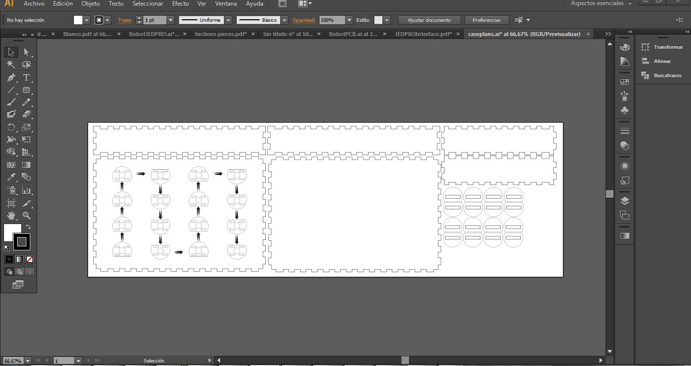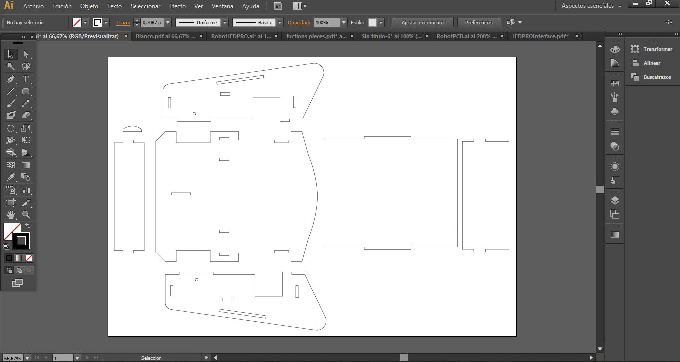 The choice of material to be used in the case of toys can be a bit ambiguous as it depends on the tastes and criteria of the people, currently there are toys made of plastic, metal or wood; Some of these materials are more welcome than others, everything depends on the purpose of the toy, functionalities and the reasons of the users. However, for the implementation of the prototype of the didactic toy proposed in this work, I chose 3 millimeter acrylic as the main material for both the robot housing and the communication board housing.