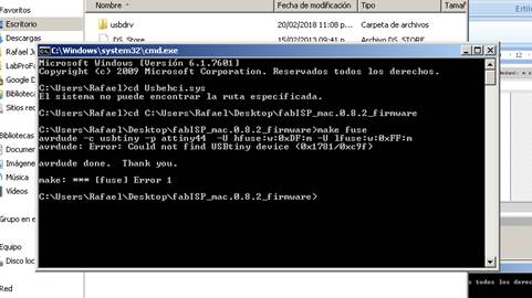 50. Make sure as well that the FabISP programmer, (the programmer has the o k resistance removed) is also connected by USB cable to the computer