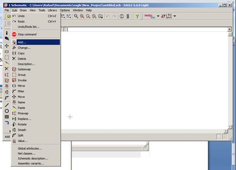 6. In Eagle control panel, click right mouse button on your new created project and choose NEW – SCHEMATIC