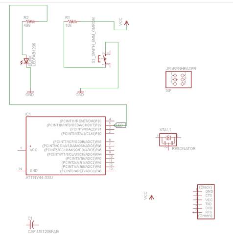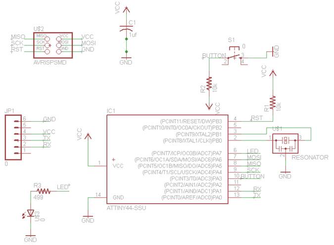 · Each board has passive and active components. The passive are the components that must exist in the board for the minimum functionality, like the microprocessor, a couple of resistances and the crystal. The active are the components that adapt the board to specific needs, for instance in this case the LED and the button will be actives