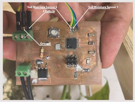 · The moisture sensor measures the voltage that pass when the circuit is closed in the presence of water.