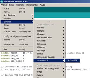 Open the Arduino IDE interface in: Files / Examples / 11.ArduinoISP / ArduinoISP