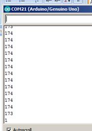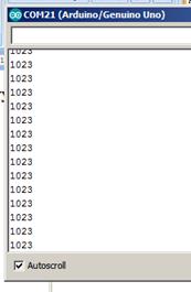 The program worked and I could read values. I mapped the values from 1023 – 100 to 0 – 100 to have a better control.