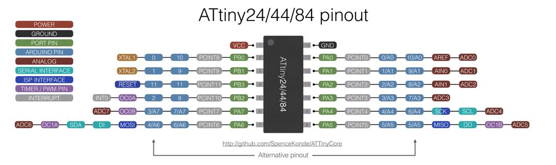 Then I could see the ATtiny44 board. I chose Processor: “ATtinny44”, Clock “Internal 8 MHz” and Programmer: “Arduino as ISP” and did the Burn Bootloader. Finally I did the Bootloader.