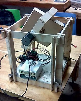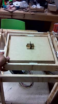 2. We put a table on the inner frame to hold the sensors in the middle. That is supposed to be the solar panel.