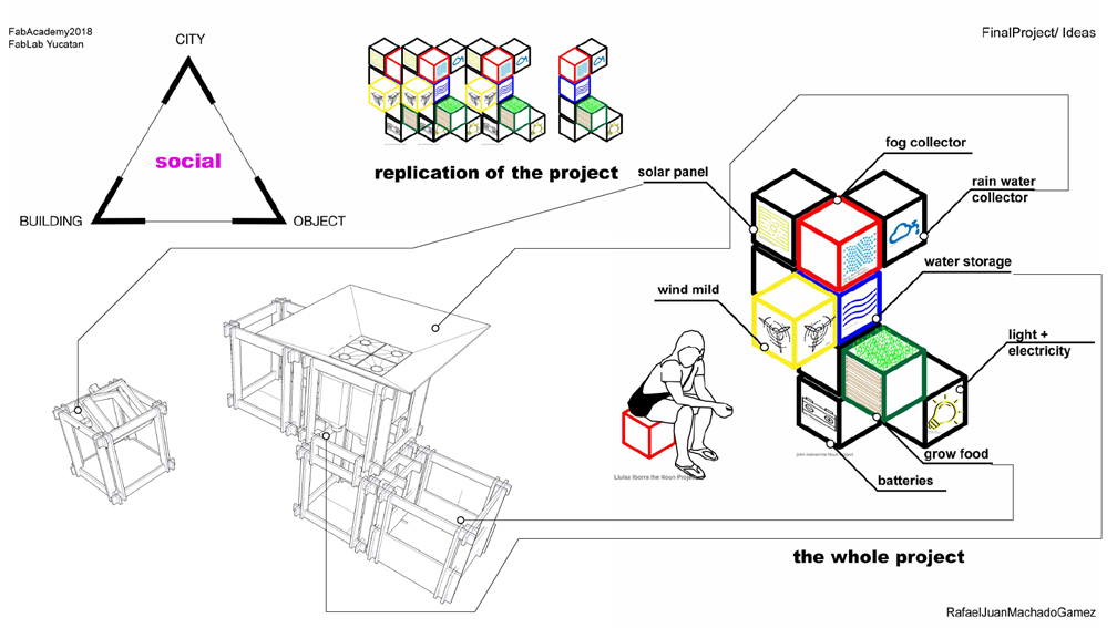 In this week I sketched possible plans to continue the project and also to protect or open it to the public. The idea is that the project reaches other levels outside the project. Personally my final project is not just an assignment, is a seed of an answer of a worry; an alternative to transform an existing reality on most of our slums.