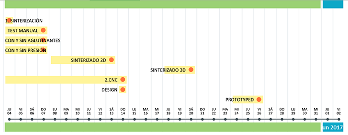 In the timeline of the development of the project, each of the processes established for the fulfillment of the project is detailed step by step. Firulais is developed with the main tools of digital manufacturing, Computer aid design design, Electronic production, 3D printing, Embedded programming, Molding casting and composites, Input, Output, Mechanical design.