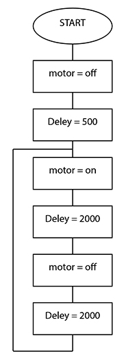 By means of a digital output of the attiny microcontroller an engine is turned on and off by a time control.