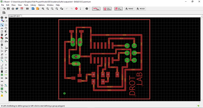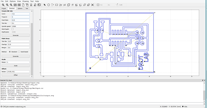 To generate the files we use a program called flatcam which receives the files in SVG formats so we save it in eagle