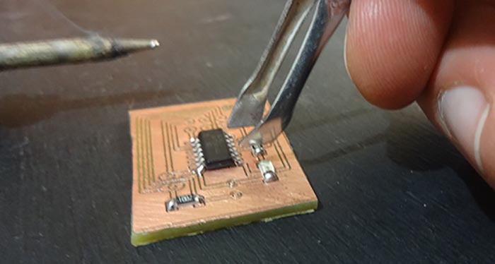 Subsequently perform the generation of tracks tracks and the development of the plate with a led which will help us to demonstrate the proper functioning of the sensor.