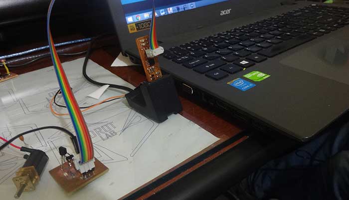 As a first step we burn the bootloaders with the enabled pins of the MISO microcontroller, MOSI VCC, GND, SCK and RESET. Once this process
