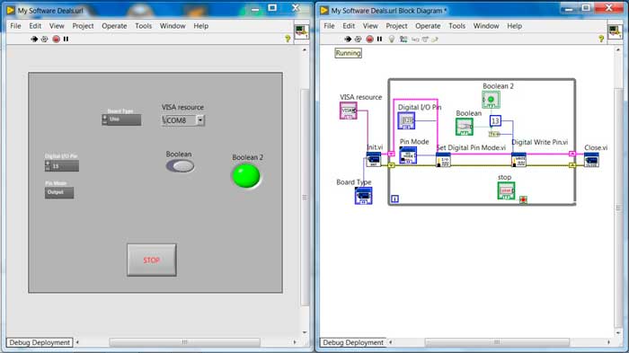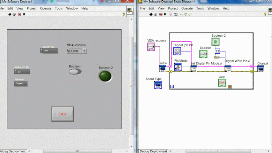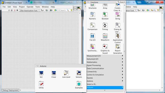 To perform graphical programming in LabView, it must be borne in mind that each block that will be used in the Arduino package installed in Labview represents a function of the Arduino language as such and each block entry in Labview represents the input parameters for that function.