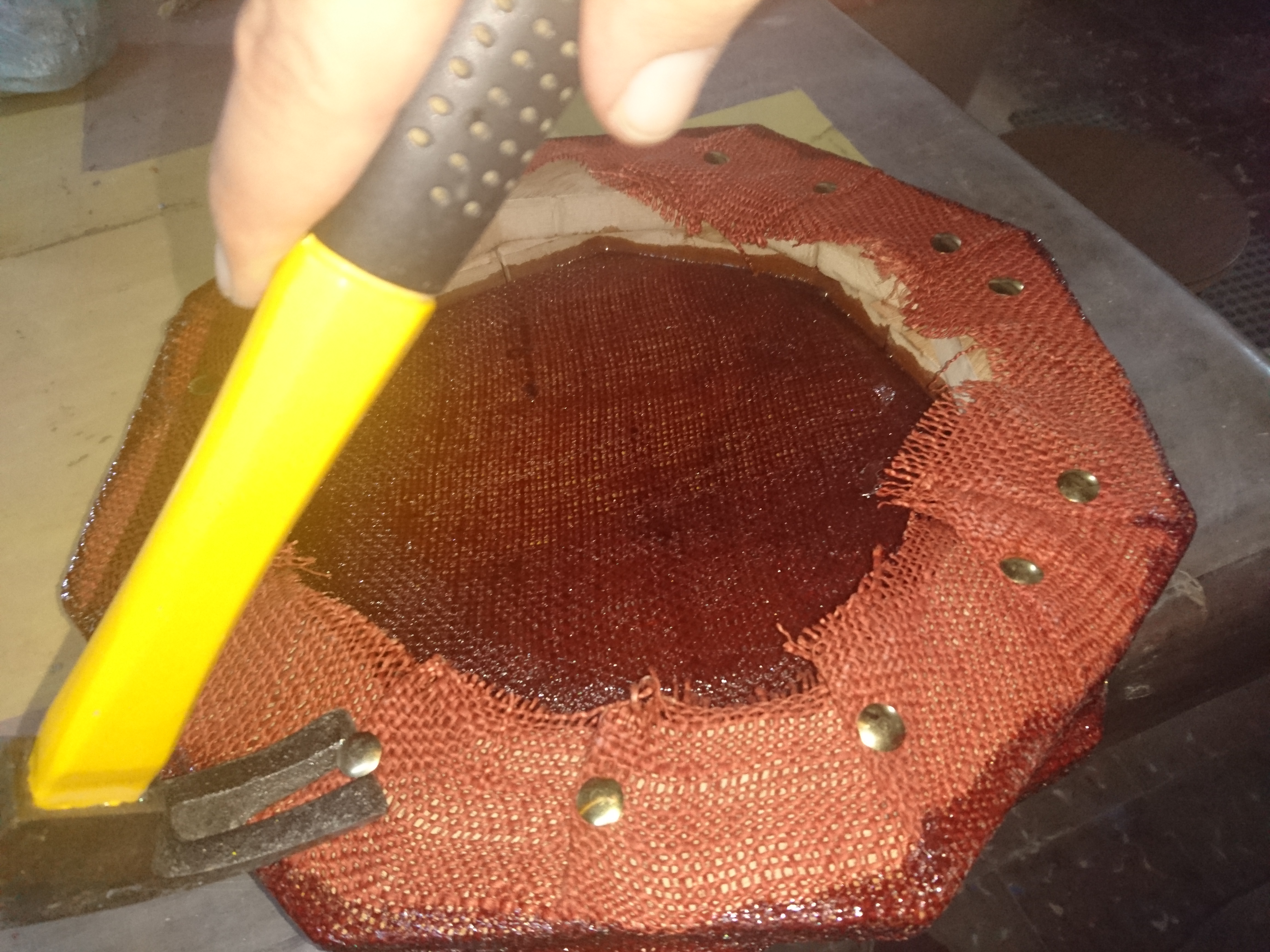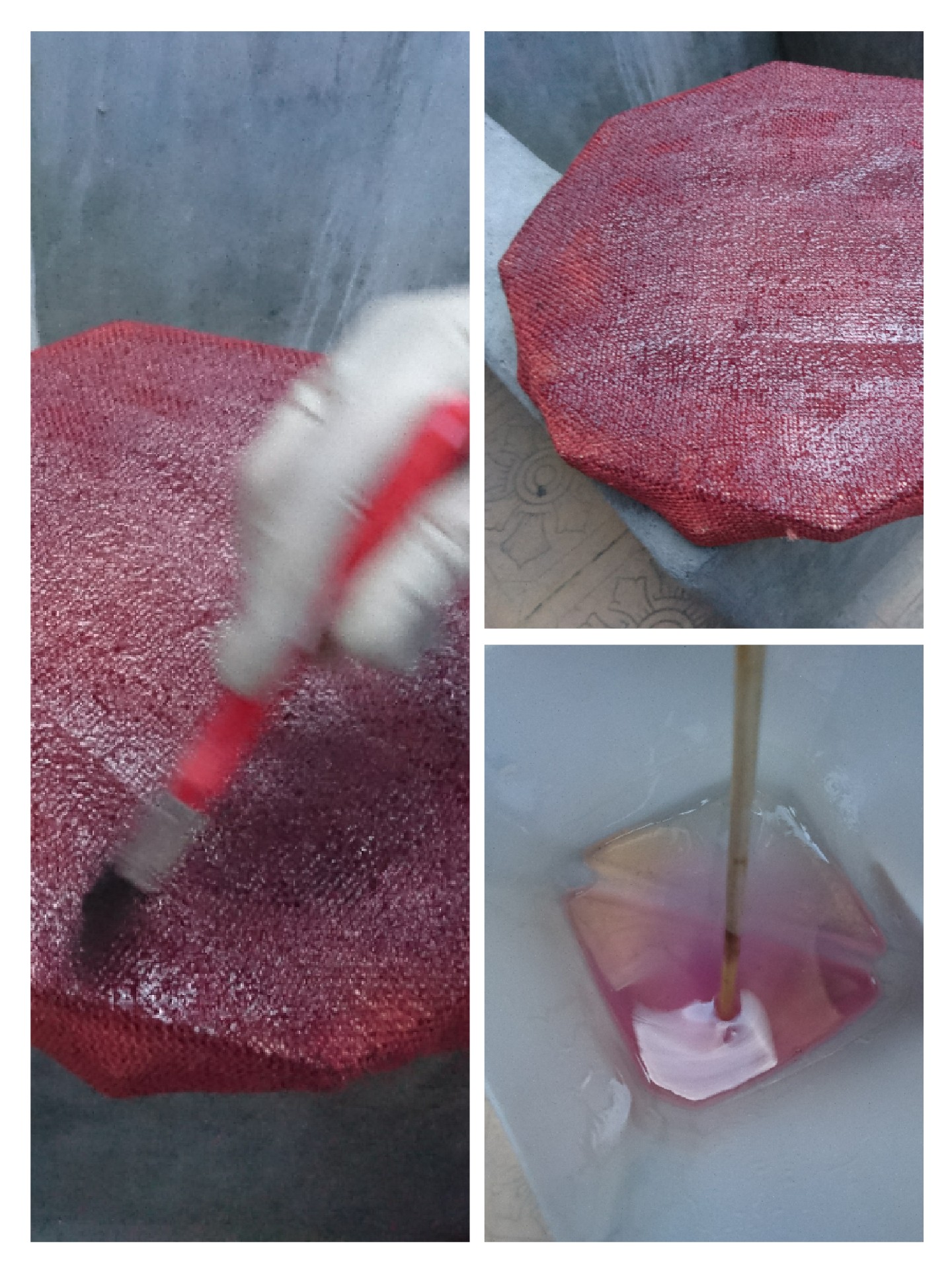 to impregnation with resin, with a brush we covered all the structure of the piza resin that we need to generate the established design.