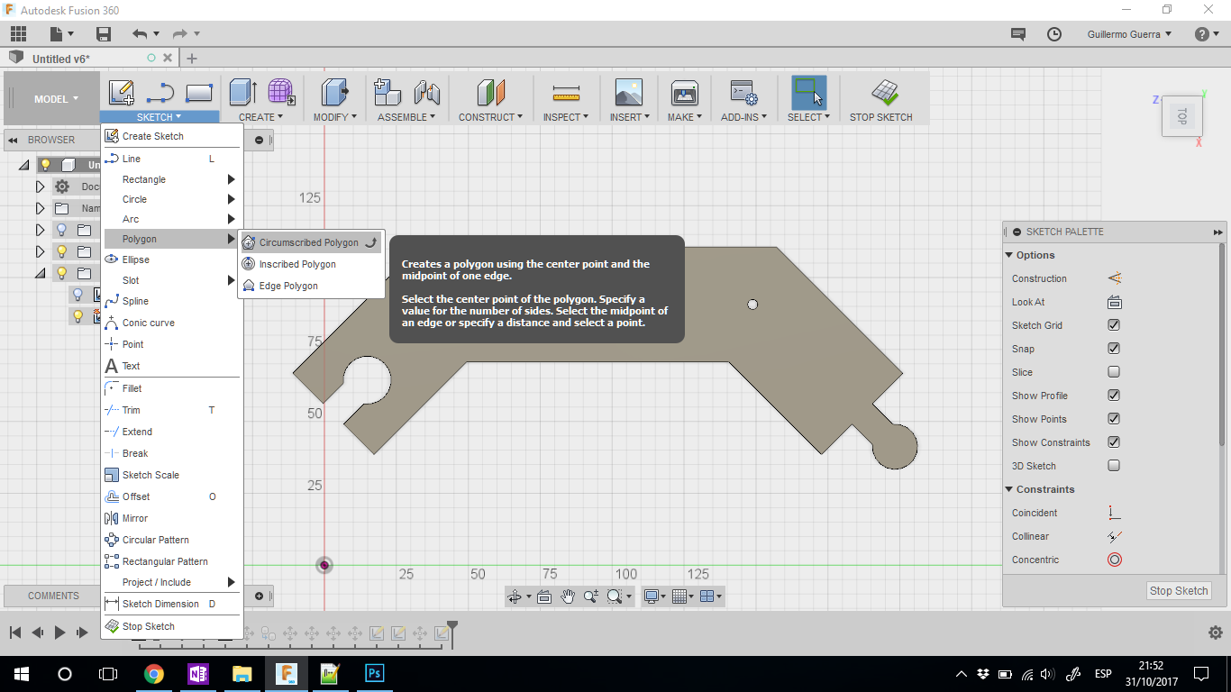 To model the chosen design, the polygon tool was used, in which its characteristics were modified to an eight-sided polygon with a diameter