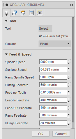Tool._ Exactly as in the previous process we chose the different speeds for this process.