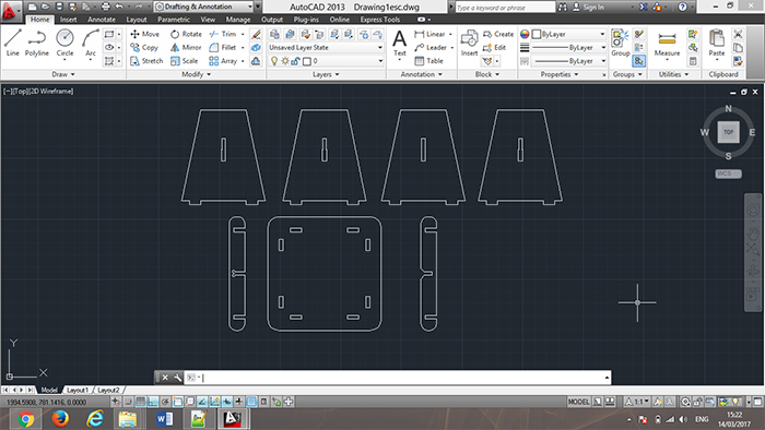 With design the new project I take ergonomic measures and make a bidimensional object with press fit, make a scale model in the cutting laser.