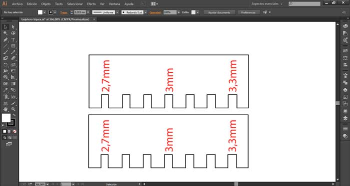 As you can see in the image the measurements of the assemblies vary from the basic measurement that we will find it in the center for the left it is reduced 0.1mm and for the right side it increases 0.1mm