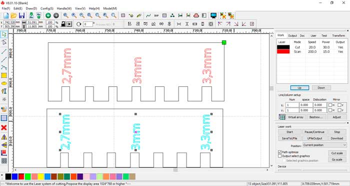 Sent the command the machine will comply with the cut code in the material with the power and the speed specified in the software to cut 3mm MDF we use a chromatic interpretation: