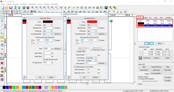 In the RDWORKS software, more than being able to visualize the files for machining allows us to create, modify, add and configure the parameters of the machine.