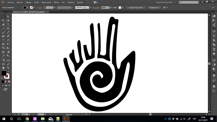 For the design Illustrator was used to redraw a pre-Columbian symbol of the Jama Coaque culture which represents the law of reciprocity, this symbol was one of the proposals for the logo for the redecorative of fab labs. In the design the pen tool was used, by means of this, an image of the symbol and the use of layers is proceeded to redraw the symbol by marking points with the right click of the mouse with a click a point is created and keeping this pressed you can create a curve between two points.