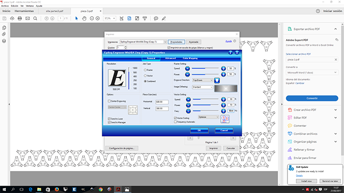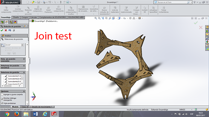 To make this piece, I use solidworks in 2D design, I make a simulation of the join test and I import to PDF to make the test of the size of the pieces.