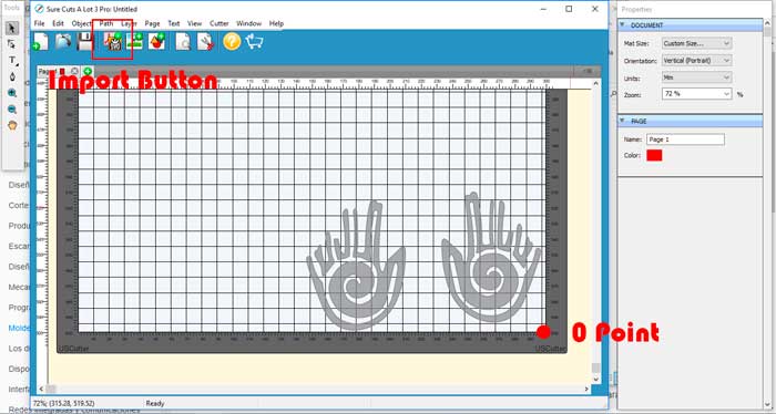 In the use of the software allows us the files created in Illustrator. we import the designed files and place it in the lower right corner since it is point 0 of this machine.
