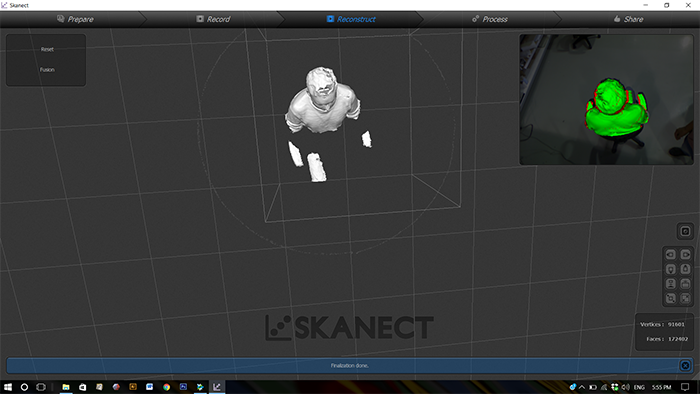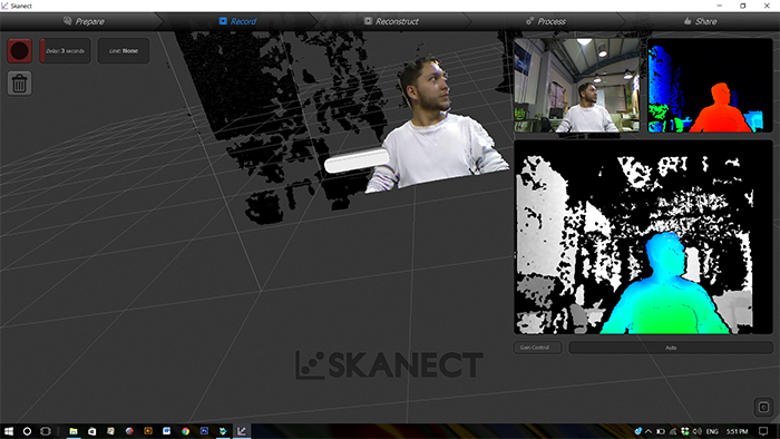 Second, in the skanect take the correct distance with the object to scan put its green color and we can proceed to scan.