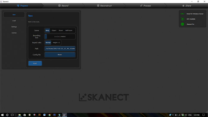 Frist install the SKANECT software and the drivers of Microsoft Kinect