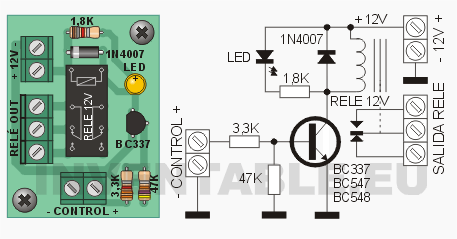 current between base and mass, this current brings the transistor to the conduction state between collector and emitter closing the circuit of the relay coil and activating