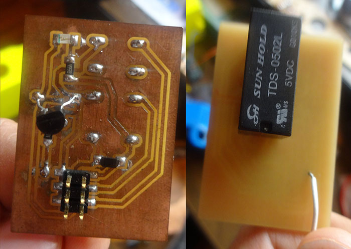 In the first plaque, use a mosfet and a relay on 12v but in the functioning, have some problems and the circuit, the mosfet did not do his job because the relay was activated,