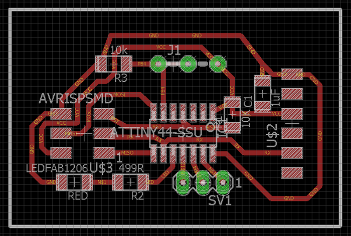 - demonstrate competence in design, fabrication and programming of your own fabbed microcontroller PCB, including an input & output device