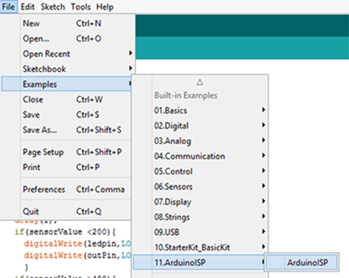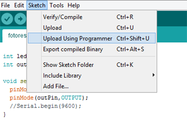 Finally upload the program, this is very simple you go and click in SKETCH and select the option upload using programmer.