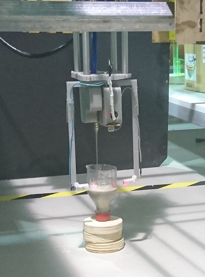 the objetive is place any the molds and the machine know the position and pour the paste inside, the machine will have a container to this paste and