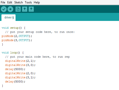 The driver program will try on Arduino, the driver make is control the pulses that are for each bobbin, the motor has two bobbins and the pulses is for one at a time, we try to do this process in programming but the motor does not spin, the only thing we achieve is that the motor is enclave, the plaque is in correct operation what does not complement it is the programming that does not achieve the rotation of the motor.