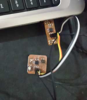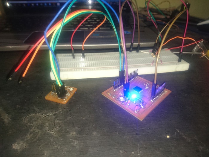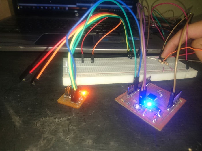 To the group assignment we communicate two boards output device from >>Guillo<<, in this link you can see the process who he makes the board and an example of the programming, and I use the board make in this assignment.