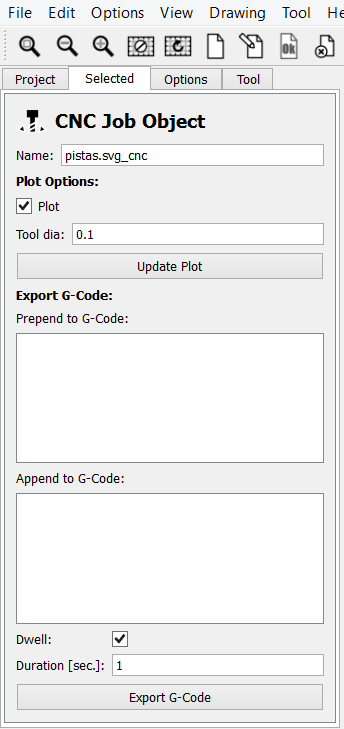 Then in the file that is created give double click and export the gcode, when you export remember edit the name and write .nc.