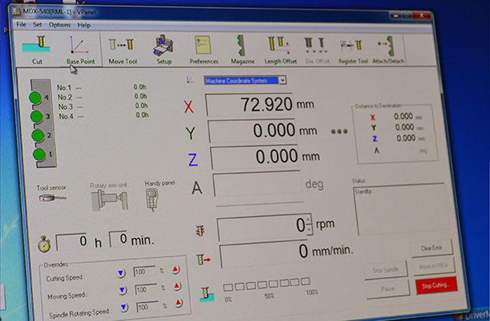 when cutting, don't interrupt the proces if the cut is correct but if you see any problem stop and configuring the machine again, If the machine has any error be be careful with the mill bcause the machine loose the base of mill and can break.