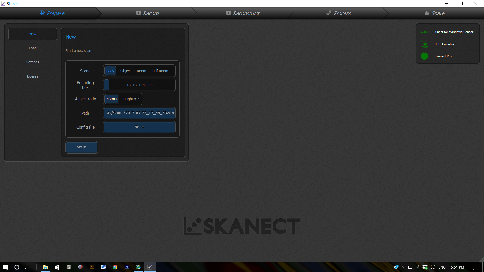 To Star scanning we must see that the person is a correct distance, the distancie is see in software, on the bigger screen your body should be in green so the sacan is