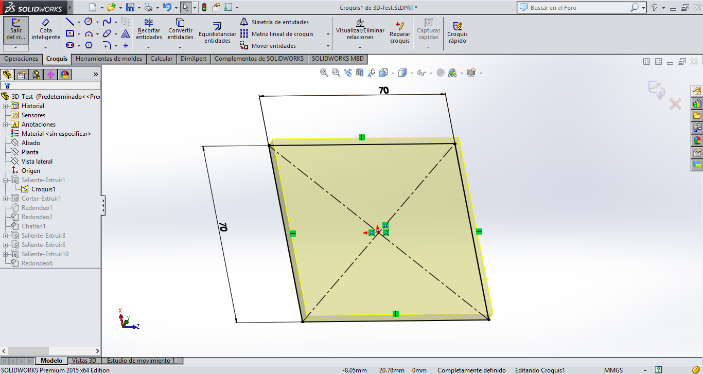 rectangle make a square of 70 x 70 and extrude 5 mm.