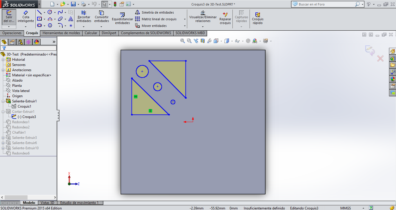 In the next step I made two triangles of the same size and three circles of different size to know the reduction of the measure, for the triangles I made a rounding