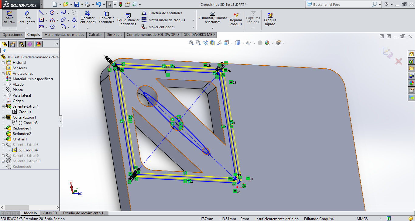 In this part I make a small square around of the circles and the triangles with the command “extrude”.