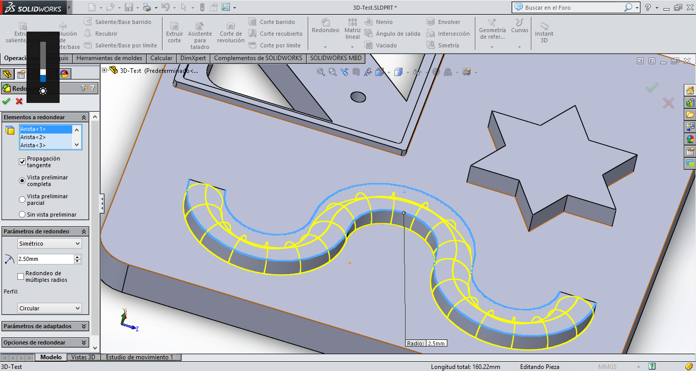 3D, which was the next step, either do. I continue with drawing the star to differentiate how works with the next figure, since the star is straight and the another is round.
