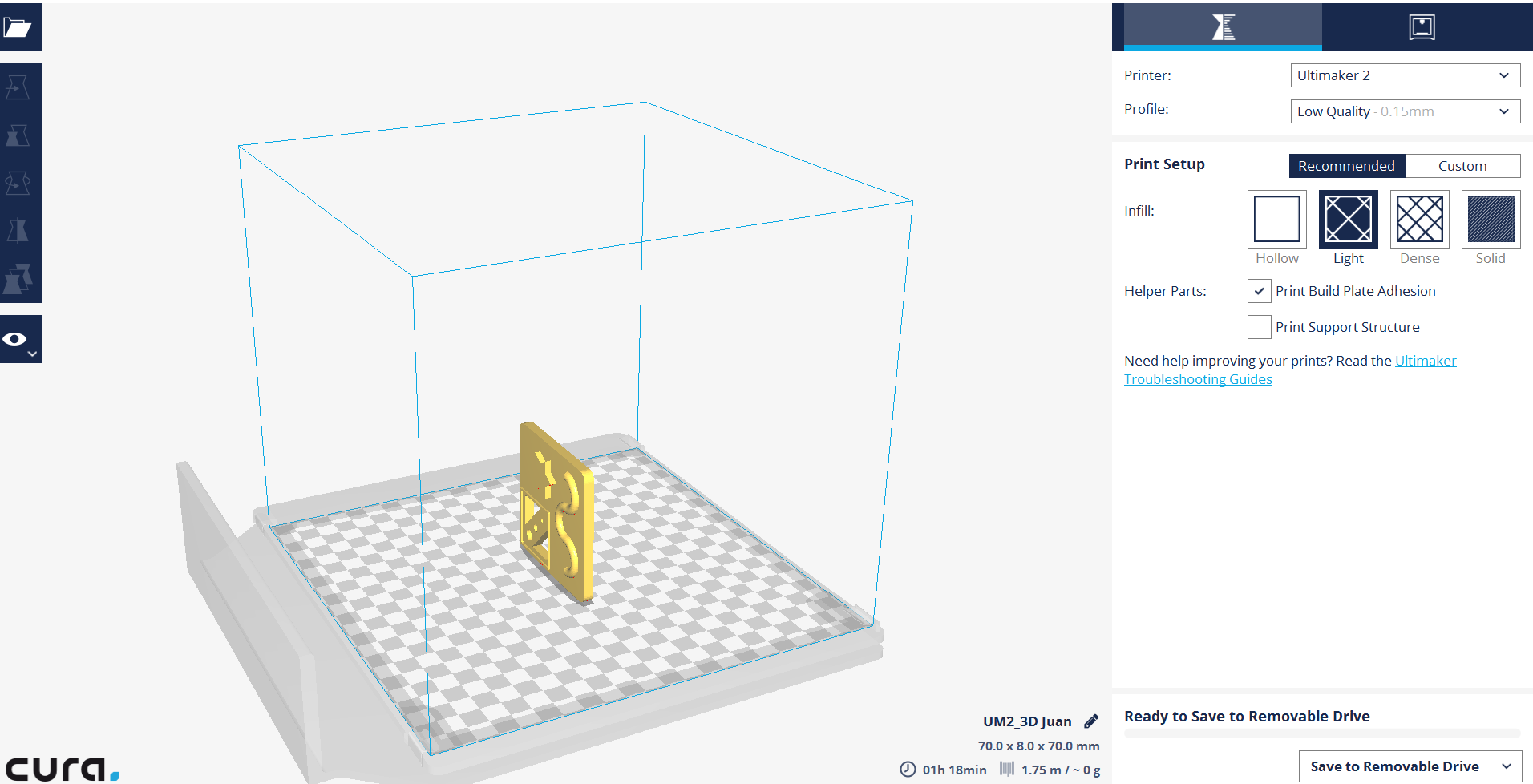 In two software I had flip the figure to make printing easier, In the program I did not have problems but the second machine I didn't see that the figure is not horizontal.