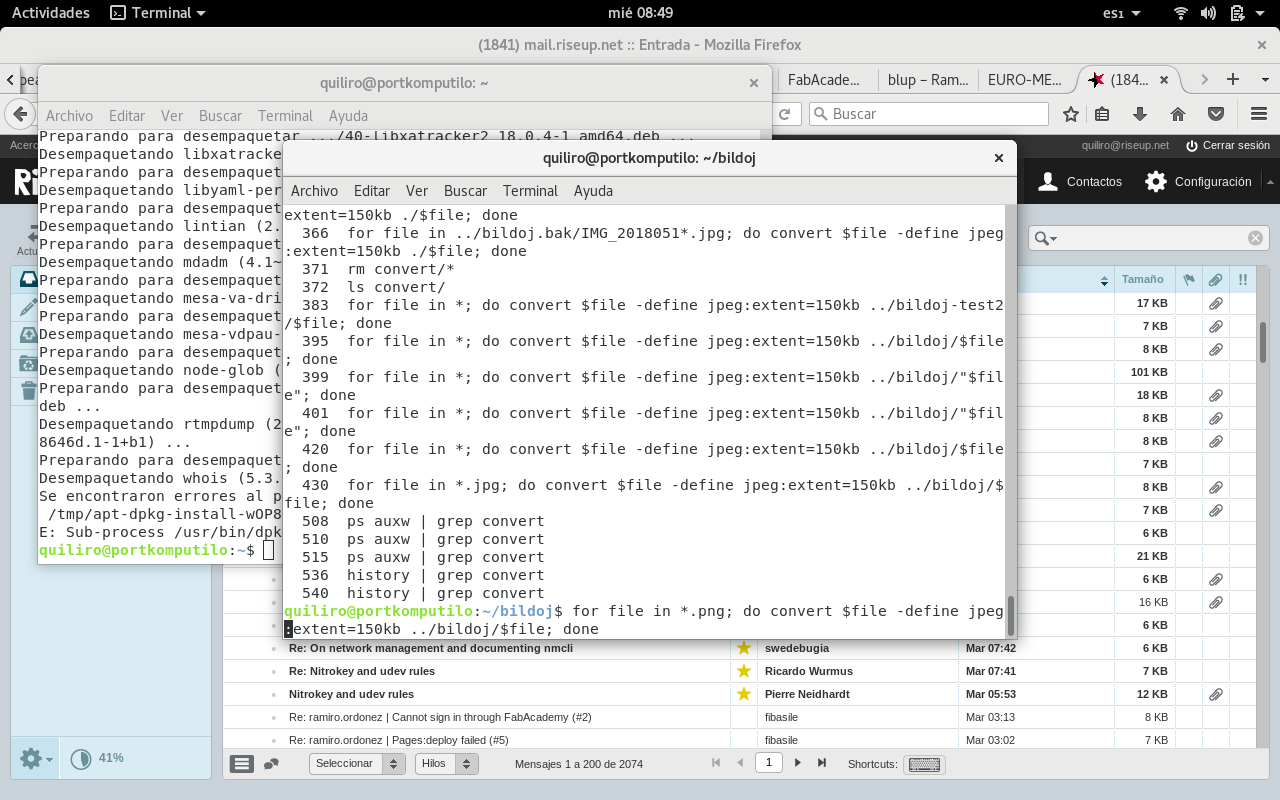 The main language at first was Esperanto because it is a neutral language for nationals of all parts of the World. Doing it that way also helped me learn a lot more vocabulary. But I had fallen on documenting back because of the heavy workflow of installing exclusively free software on a beta version of a Libre distro of GNU: GuixSD. It does not include all packages and it is difficult to compile software from source because its innovative filesystem structure is not standard and files would not be installed in the appropriate directories. I love GuixSD's design paradigm. But I do not have time or knowledge yet to contribute the changes I need to study FabAcademy. Later, I decided to use Debian GNU without including non-libre software. (It is not recommended for end users because they cannot distinguish which software is not libre. But I have experience in this task.) Now the website is in English only and I am using a mainstream GNU distro where it is easy to include all necessary libre software. (I have to be careful to analyze if the recommended software is libre before installing it, though. Sometimes software which is advertised as libre, is not in practice.) When I catch-up, I will translate everything to Esperanto. And if I have time, will try to build the packages for the necessary software to go through FabAcademy in complete freedom and in GuixSD (the distro) or in PureOS or in Debian with Guix (the package manager).