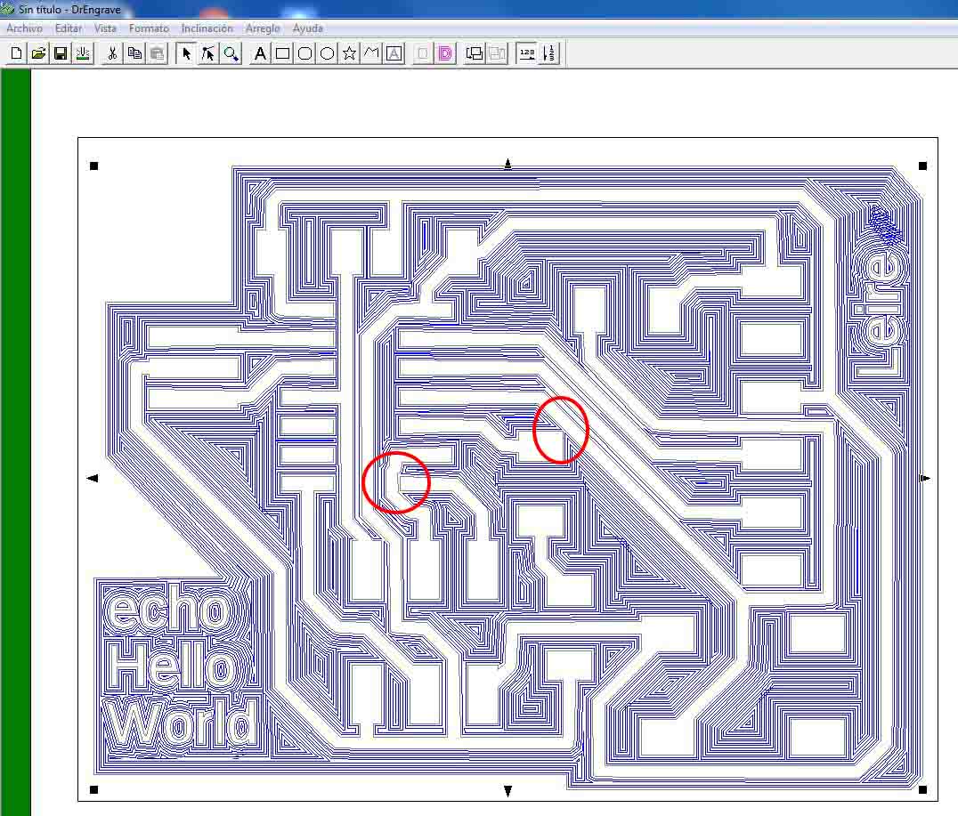 *We have to make more tests with this Engraver tool, it has done too thin traces this time :S For this kind of work it is fine, but it would be a big problem if we need to connect motors or heavier components there, they could be burned and not working.
