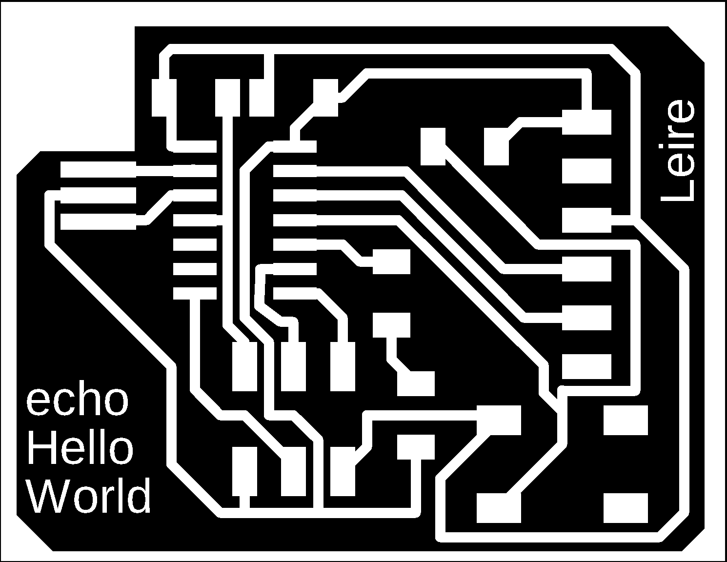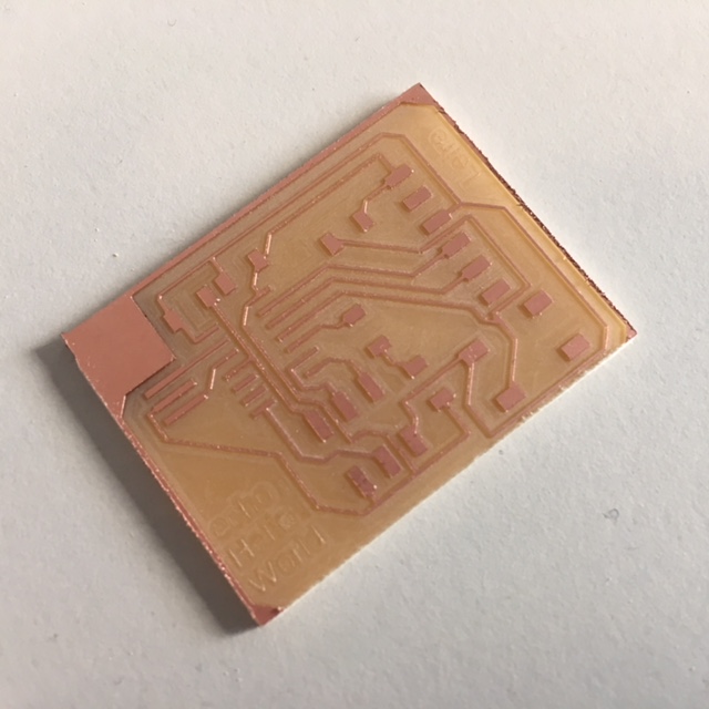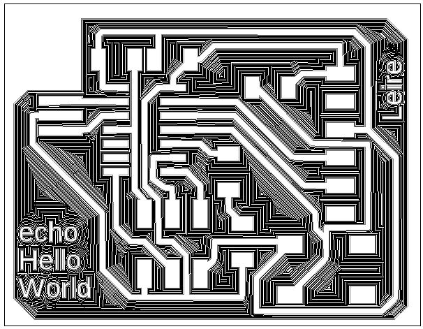 After the board layout looked good, I exported the traces and outline in the same .png file to then modify some aspects on Photoshop (reduce milling area, for example) and then go to mill on the Roland with a .bmp file.
