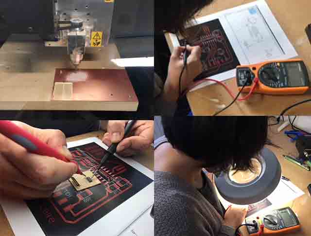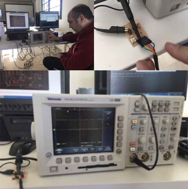 Once Javi Vicente and me have our PCB soldered, we test equipment in our lab to observe the operation of a micro-controller circuit board.